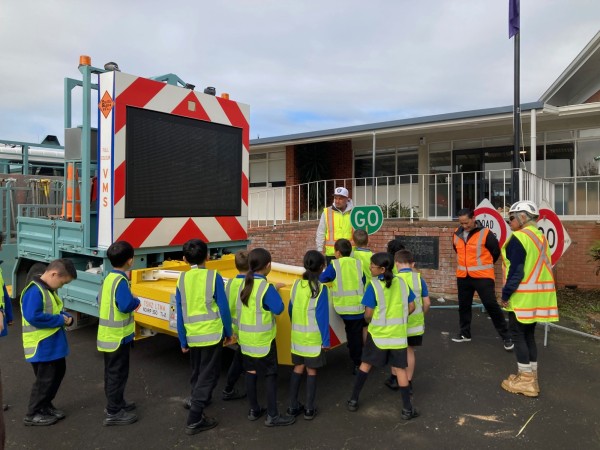 Further north, Trafficsafe visited Churchill Park School in Auckland to educate students about safety around road works.